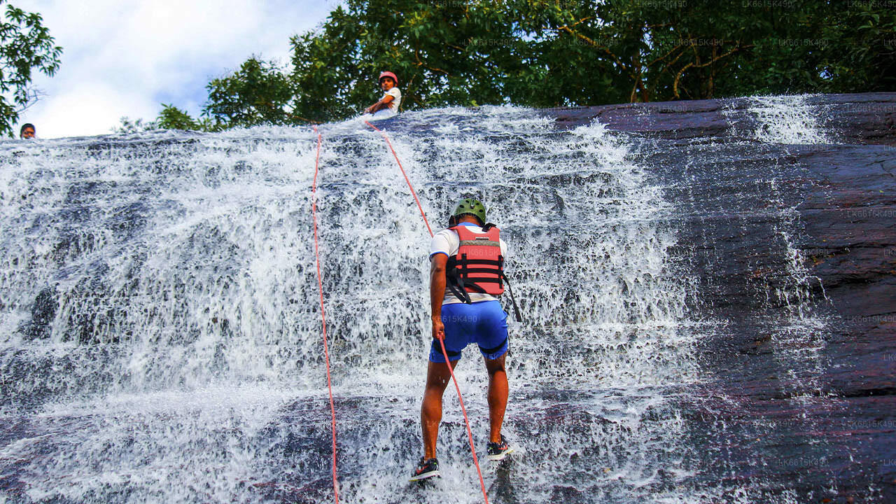 Canyoning in Sri Lanka may involve hiking, rock climbing, waterfall abseiling, and/or waterfall jumping for a period between three-quarters of an hour to one hour, and can be quite stre