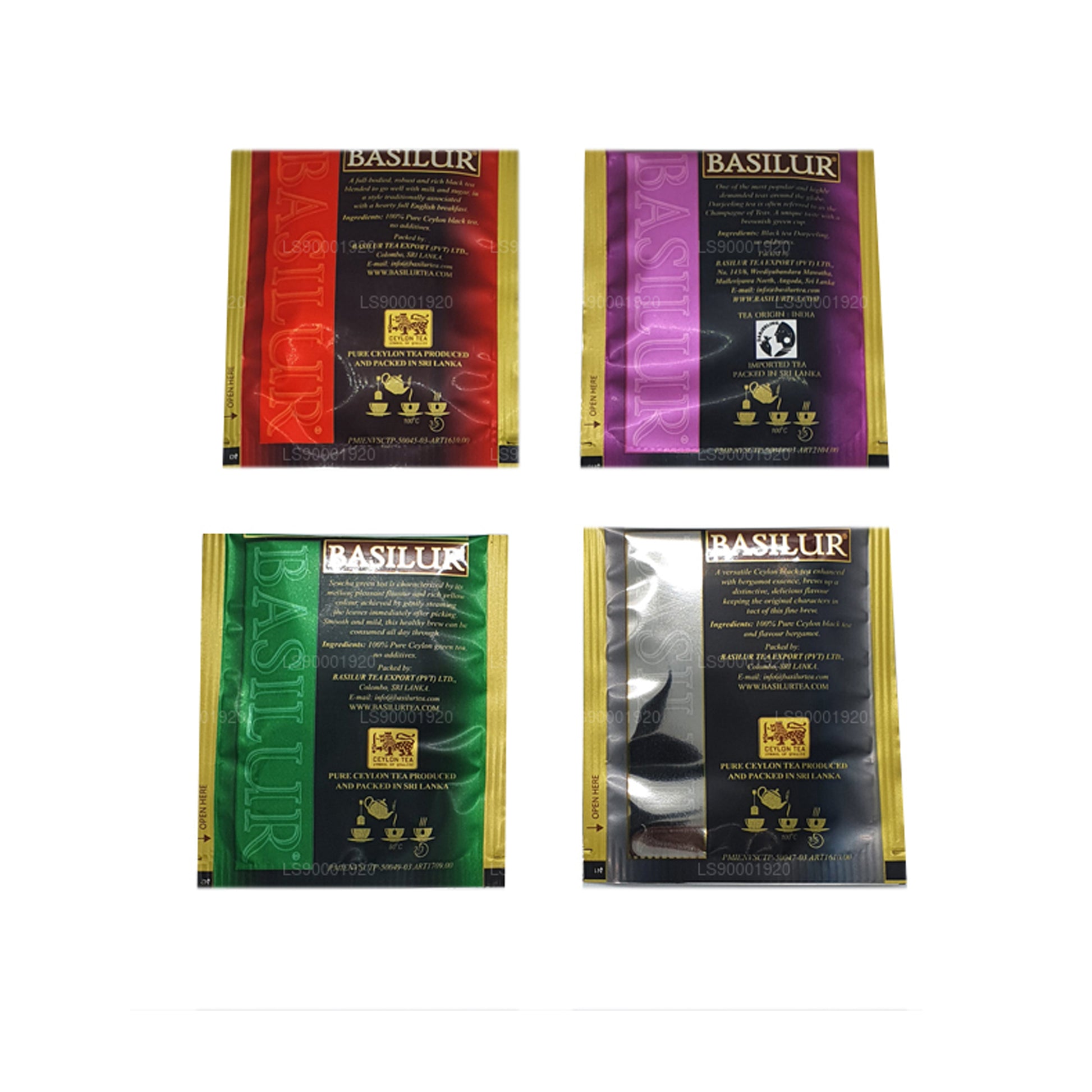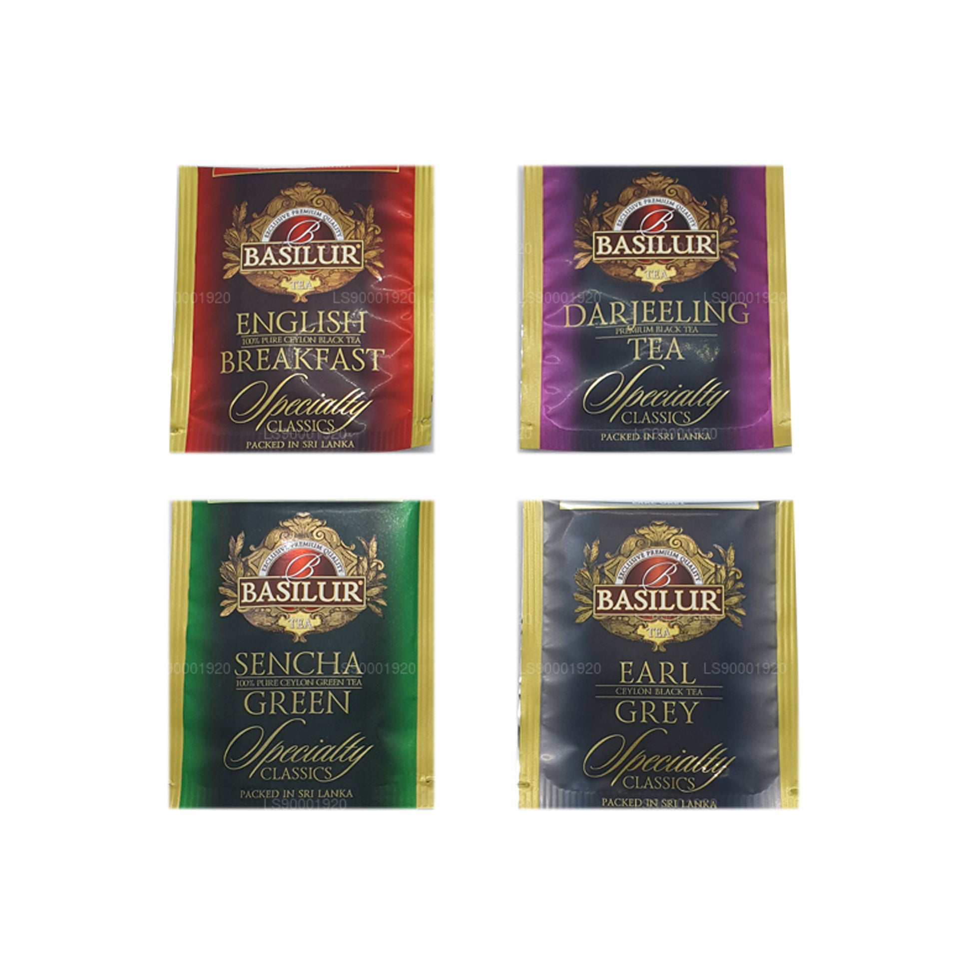 8 folie indhyllet teposer x 4 typer te pakket ind i en metal caddie.