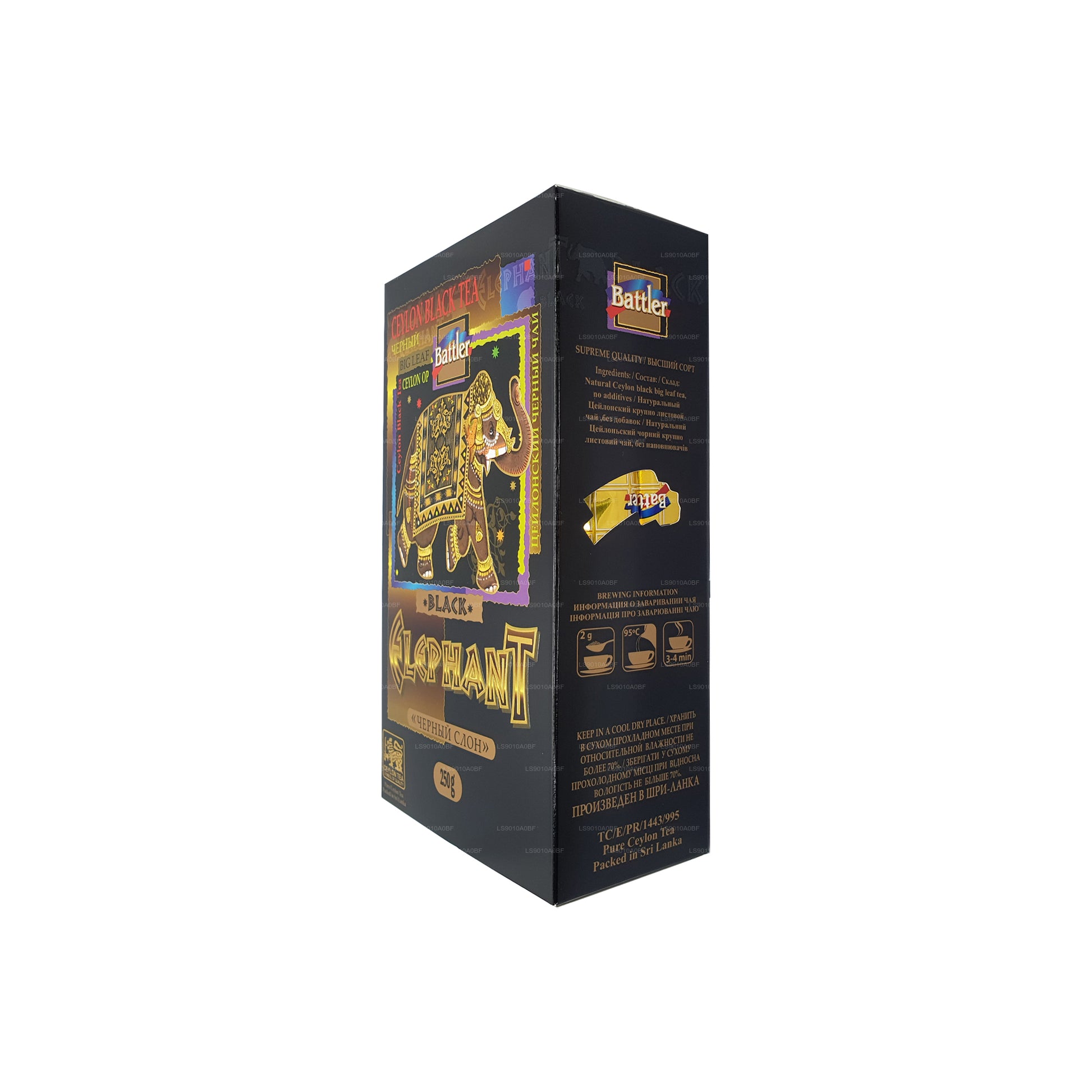 Battler Black Elephant Loose Leaf Tea is a robust Ceylon black tea sourced from Sri Lanka’s Ruhuna region, known for its rich tea-growing heritage. Handpicked and processed using traditional methods, this tea offers a full-bodied flavor profile with rich notes of malt, caramel, and cocoa, complemented by a subtle hint of spice. The loose-leaf form ensures a complete release of flavor and aroma, providing a satisfying and invigorating cup at any time of day. Perfect for tea enthusiasts seeking a bold, flavorful experience, Battler Black Elephant delivers an authentic taste of Sri Lanka's finest tea.