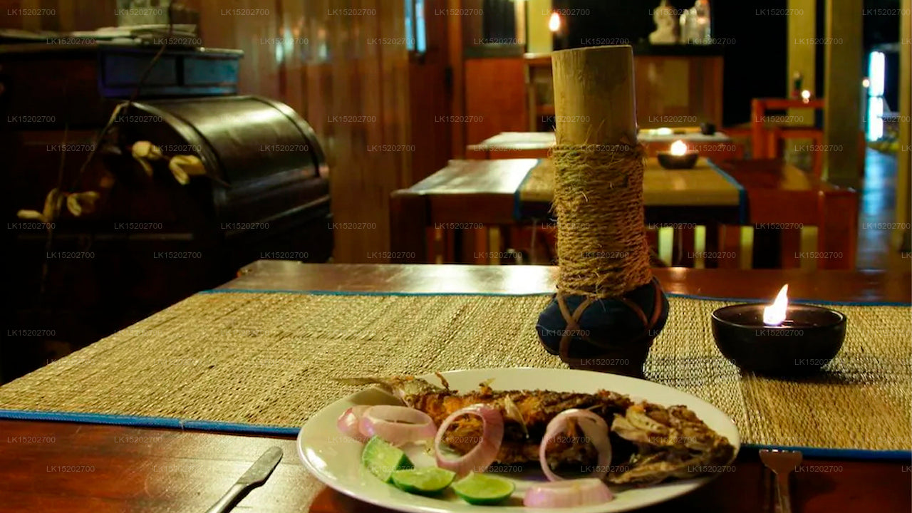 - Dining: Fresh Sri Lankan meals served in a shaded outdoor or riverside area.