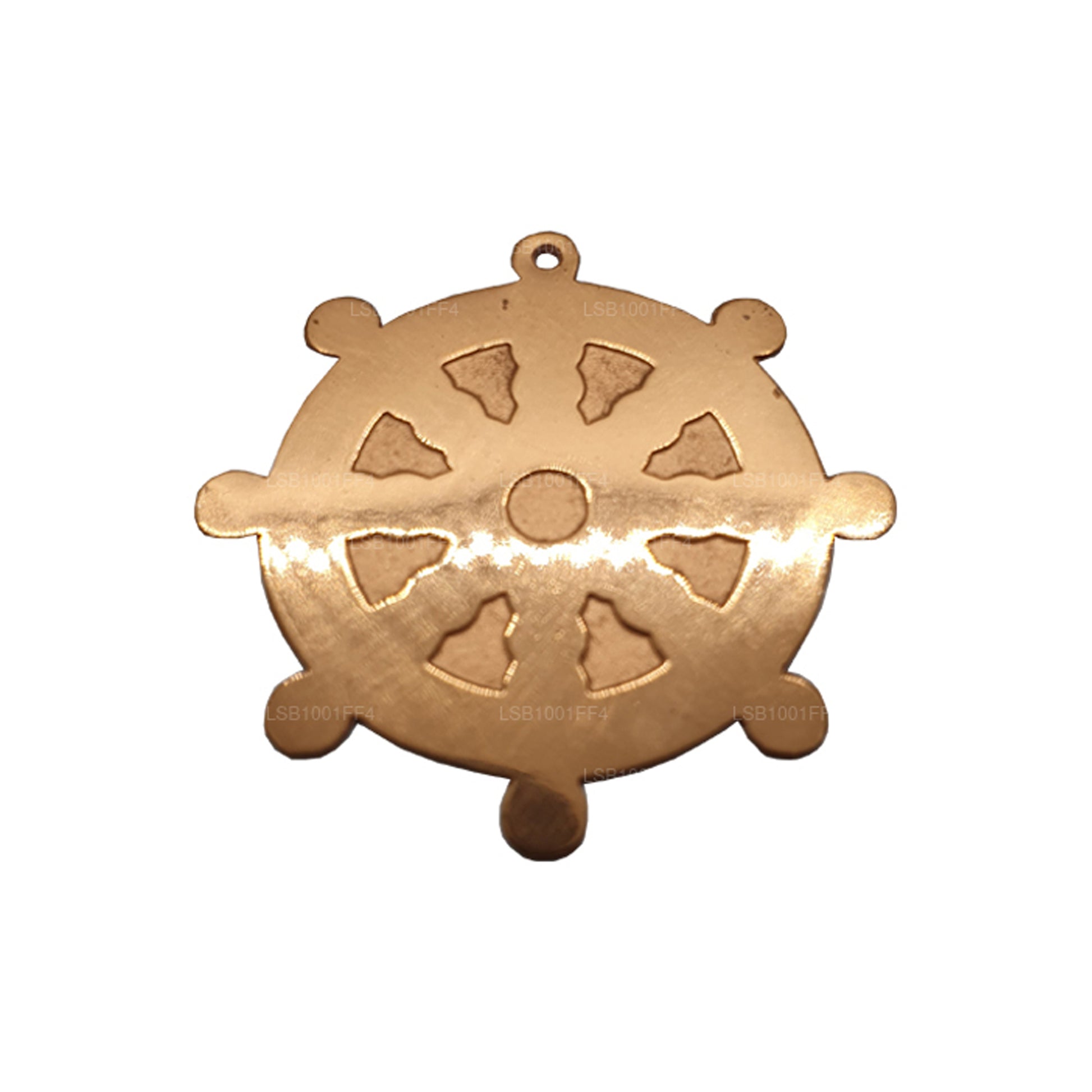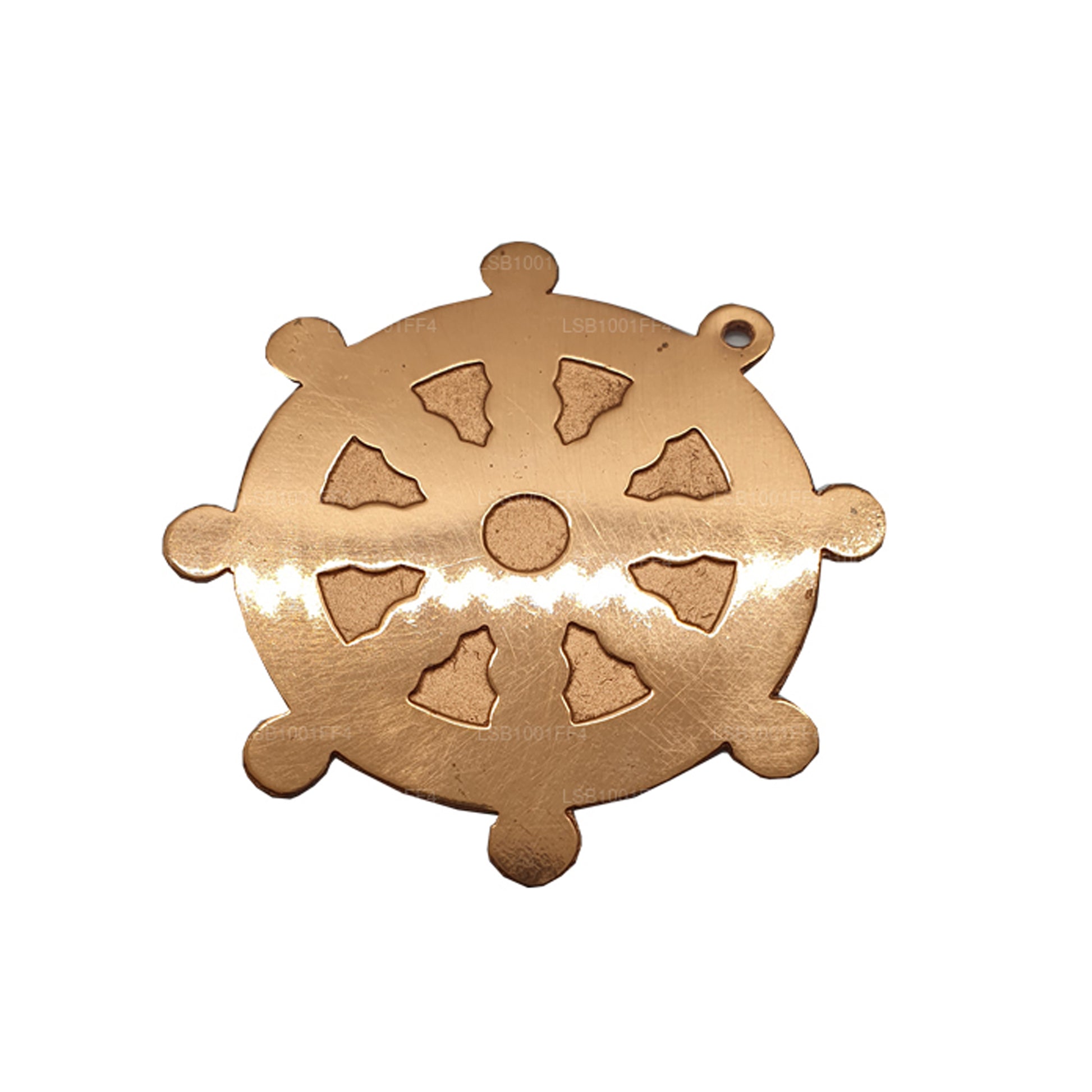 The Copper Dharmachakra (4 cm) is a beautifully crafted symbol of the Buddhist teachings, representing the "Wheel of Dharma." This traditional emblem, made from high-quality copper, serves as a reminder of the Buddha's teachings and the path to enlightenment. The intricate design features eight spokes, symbolizing the Noble Eightfold Path, which is central to Buddhist philosophy. With its compact size, this Dharmachakra makes for a perfect decorative piece or a spiritual token for meditation spaces. Ideal for those seeking a meaningful and elegant symbol of Buddhism, this copper piece blends spiritual significance with craftsmanship.