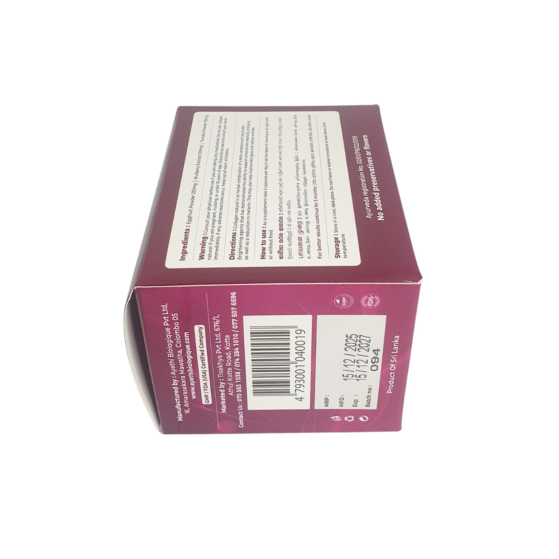 - Eggfruit Powder (250mg)