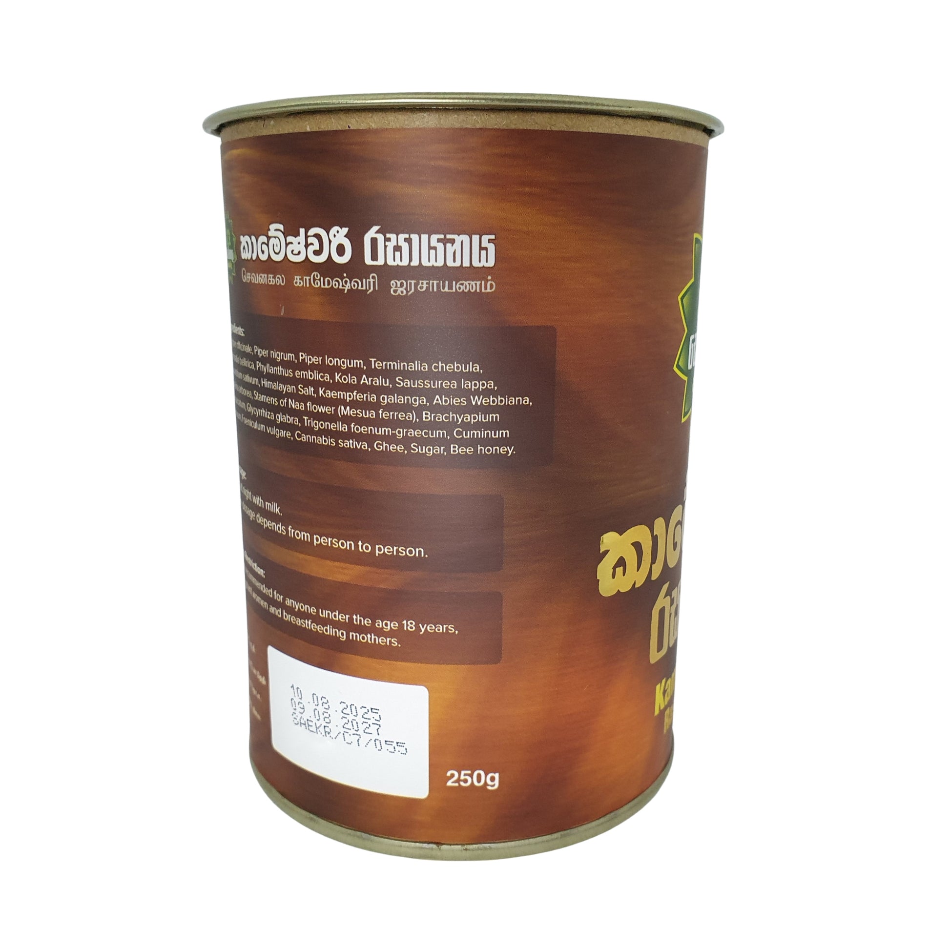 Nøje tilberedt med en rig blanding af naturlige ingredienser som peber (Piper nigrum), ingefær (Zingiber officinale), tippili (Piper longum), nelli (Phyllanthus emblica), spidskommen (Cuminum cyminum), bukkehorn (Trigonella foenum-graecum), koriander (Coriandrum sativum), neem (Azadirachta indica), duftende bælge, savinda salt, talisa blade, elfenben bark, namal renu, stjerneanis, stor stjerneanis, lakrids (Glycyrrhiza glabra), sort spidskommen, kardemomme (Elettaria cardamomum), kanelbark, teja blade, hampfrø ristet i ghee, honning og sukker (dobbelt vægt), denne traditionelle Rasayana giver en kraftfuld kombination af ernæring, styrke og helbredende velvære.