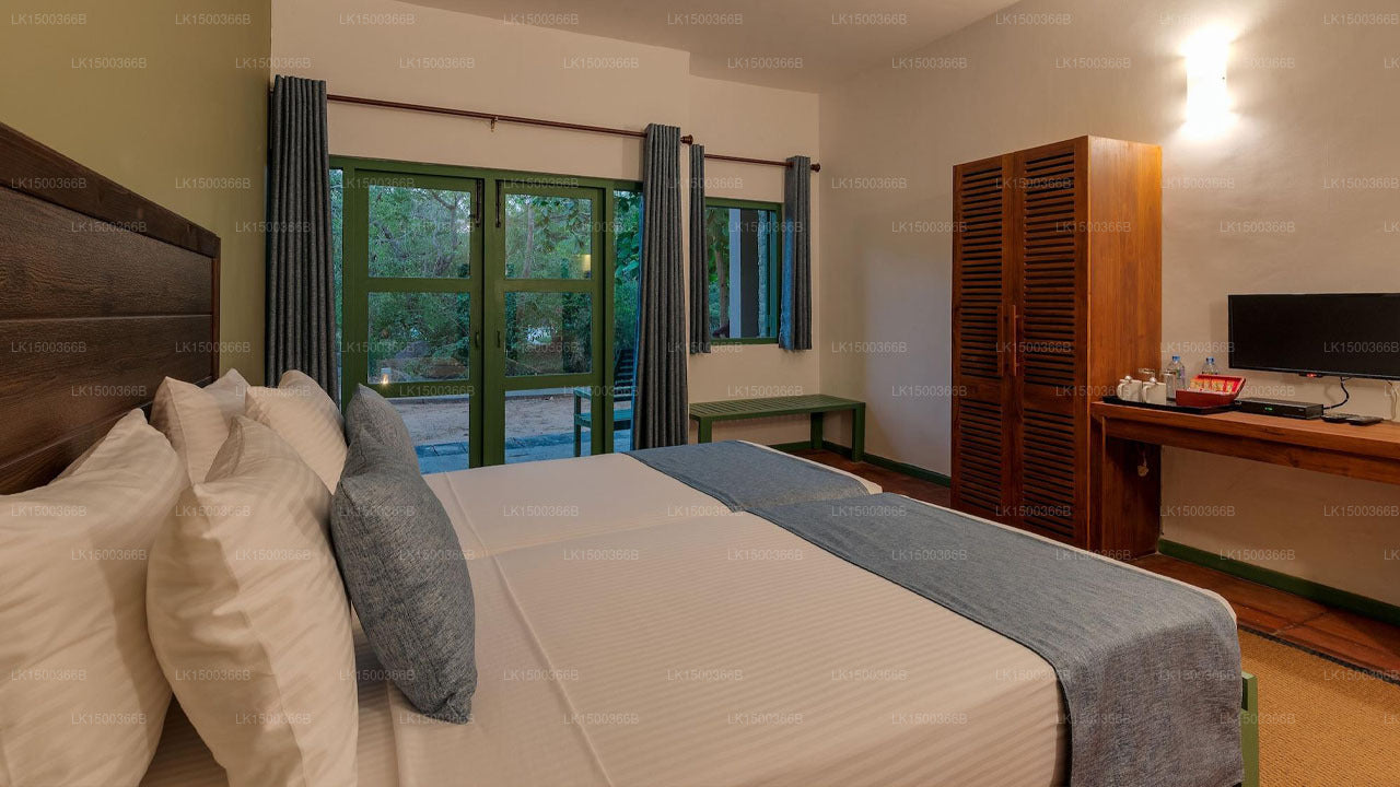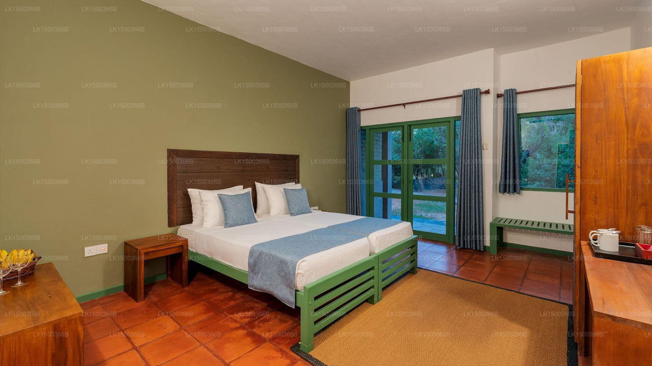 (SKU:LK1500366B) Elephant Reach Yala is a luxury Hotel that is located in Yala with many national parks within easy reach. A unique nature resort with many tropical trees such as Kohomba, Mango Kadju (cashew), guests can experience a picturesque drive from the airport to the hotel. Offering an exclusive hospitality experience, you can relax and enjoy a nature filled holiday. Chalets are well maintained and come with modern facilities while hotel facilities include an outdoor swimming pool, a lovely restaurant and bar as well as safari jeeps with guides for you to explore the wonders of natural habitat that our mother Lanka has in store.