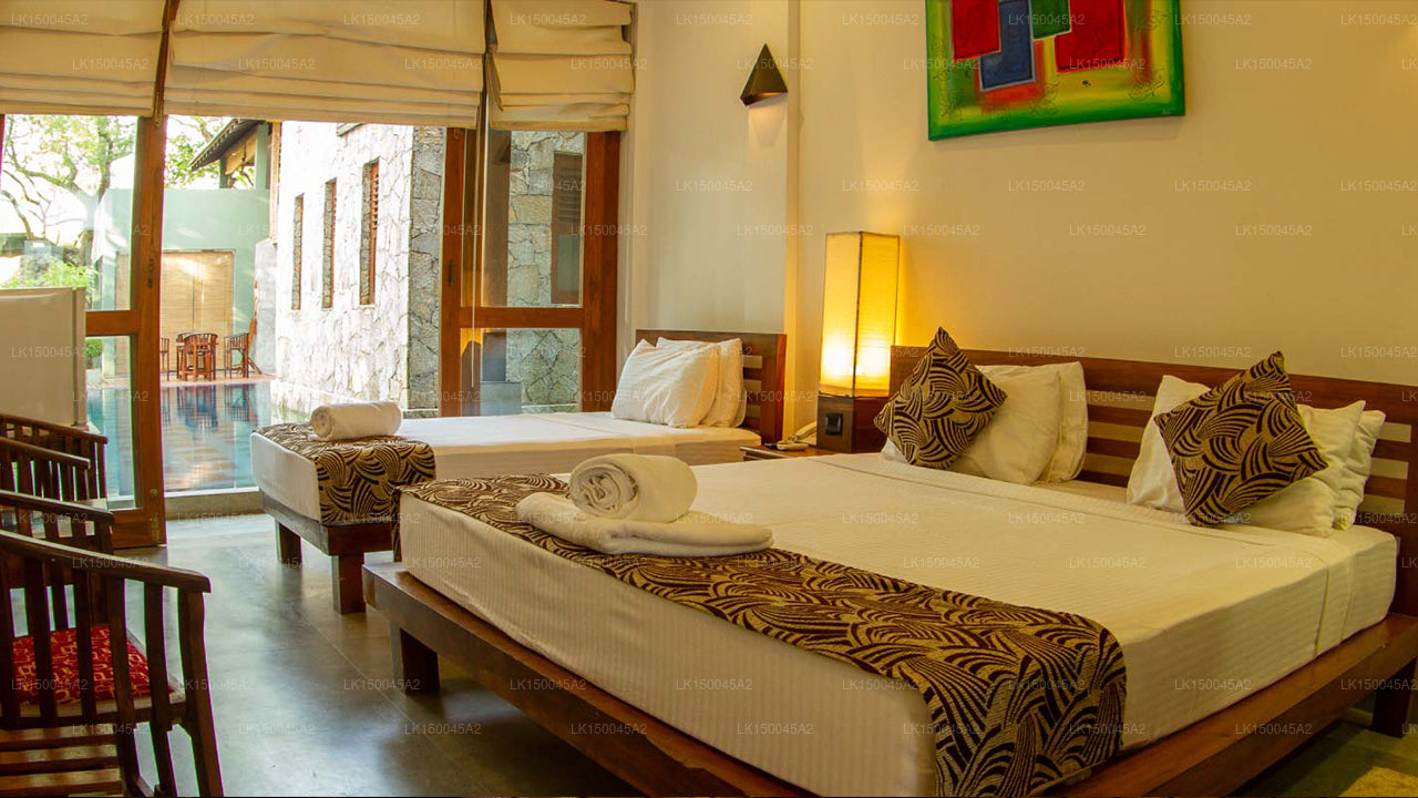 (SKU: LK150045A2) Nestled in the heart of the captivating Udawalawe region, Elephant Trail Hotel offers a unique and immersive experience surrounded by nature's splendor. Inspired by its name, the hotel offers an intimate connection with the region's renowned inhabitants, the majestic elephants. The rustic yet comfortable accommodations blend seamlessly with the lush landscapes, providing a serene escape. Guests can enjoy the breathtaking sight of elephants from the comfort of the hotel, and embark on thrilling safaris to witness these gentle giants in their natural habitat. With its warm hospitality, nature-centric ethos, and proximity to Udawalawe National Park, Elephant Trail Hotel offers an unforgettable stay that showcases the wonder of Sri Lanka's wildlife.
