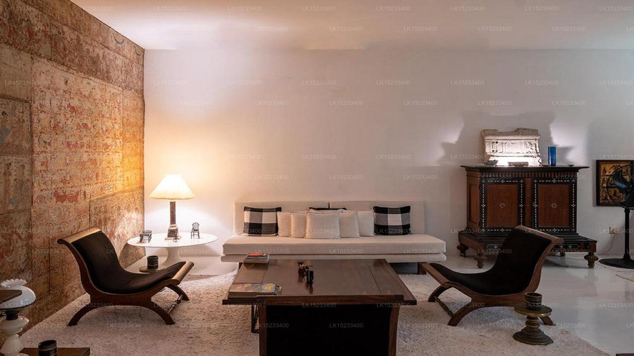 The property features a few elegantly designed rooms that reflect Geoffrey Bawa’s signature style, blending traditional Sri Lankan elements with modern aesthetics. Each room is equipped with tasteful furnishings, en-suite bathrooms, and artistic decor that tells the story of Bawa’s architectural journey.