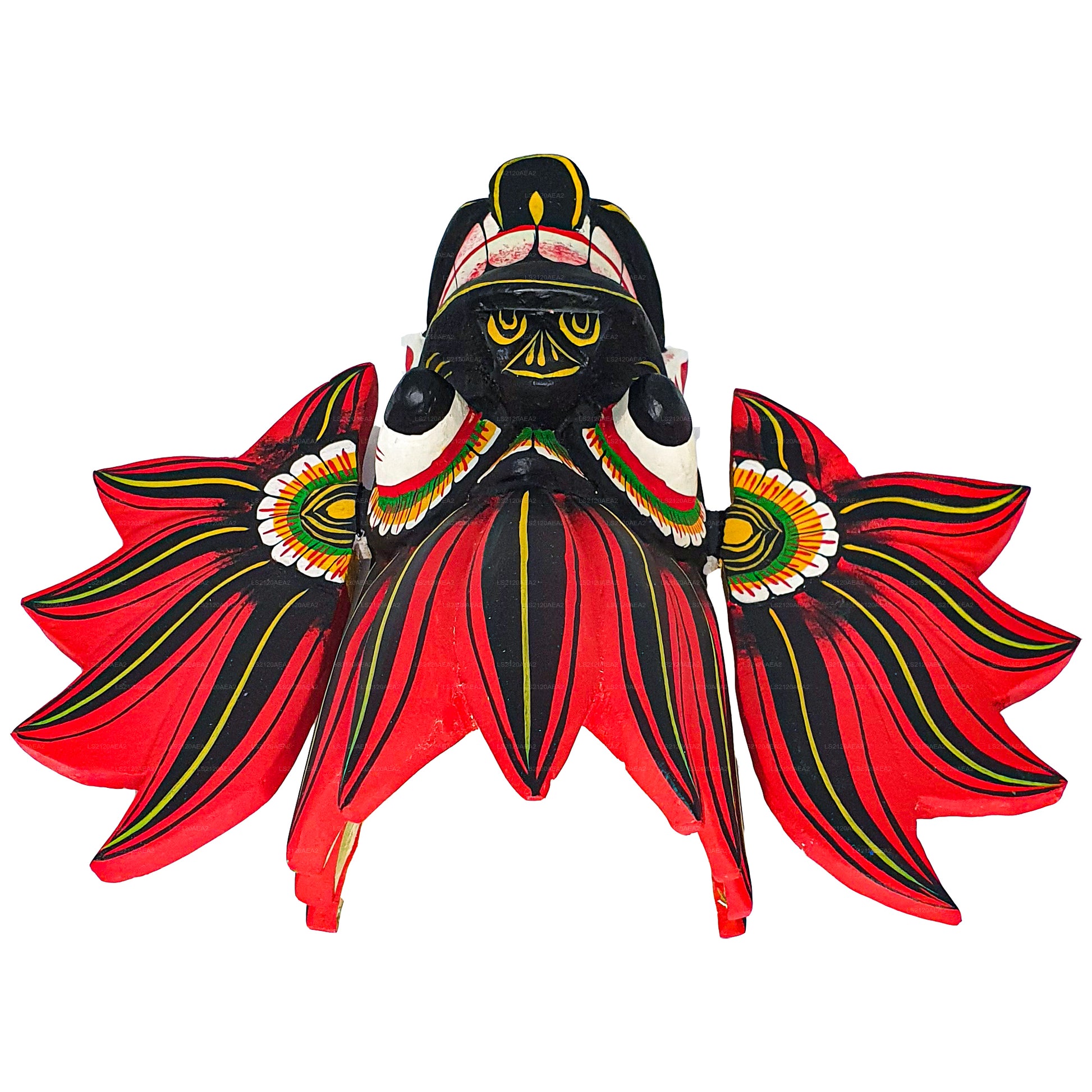 - Alle masker er beregnet til brug som boligindretning og er ikke til at bære ved traditionel Kolam-dans. Hvis du har brug for bærbare masker, skal du bestille en særlig type med åbninger til mund og øjne samt korrekt vejrtrækning. Specialfremstillede bærbare masker kan bestilles separat efter anmodning og med korrekte mål.