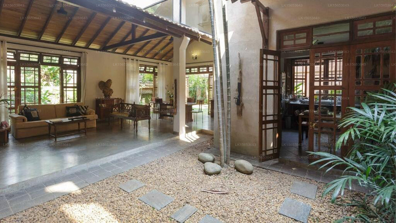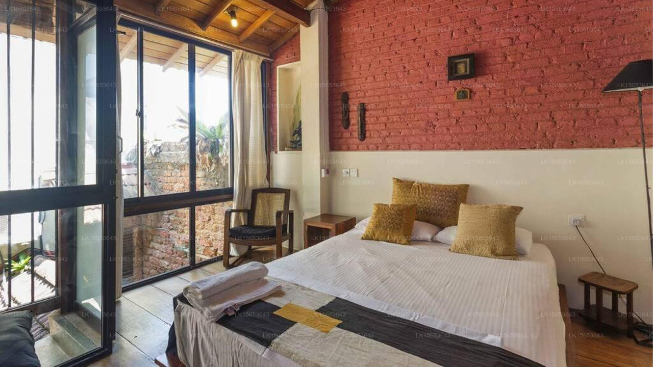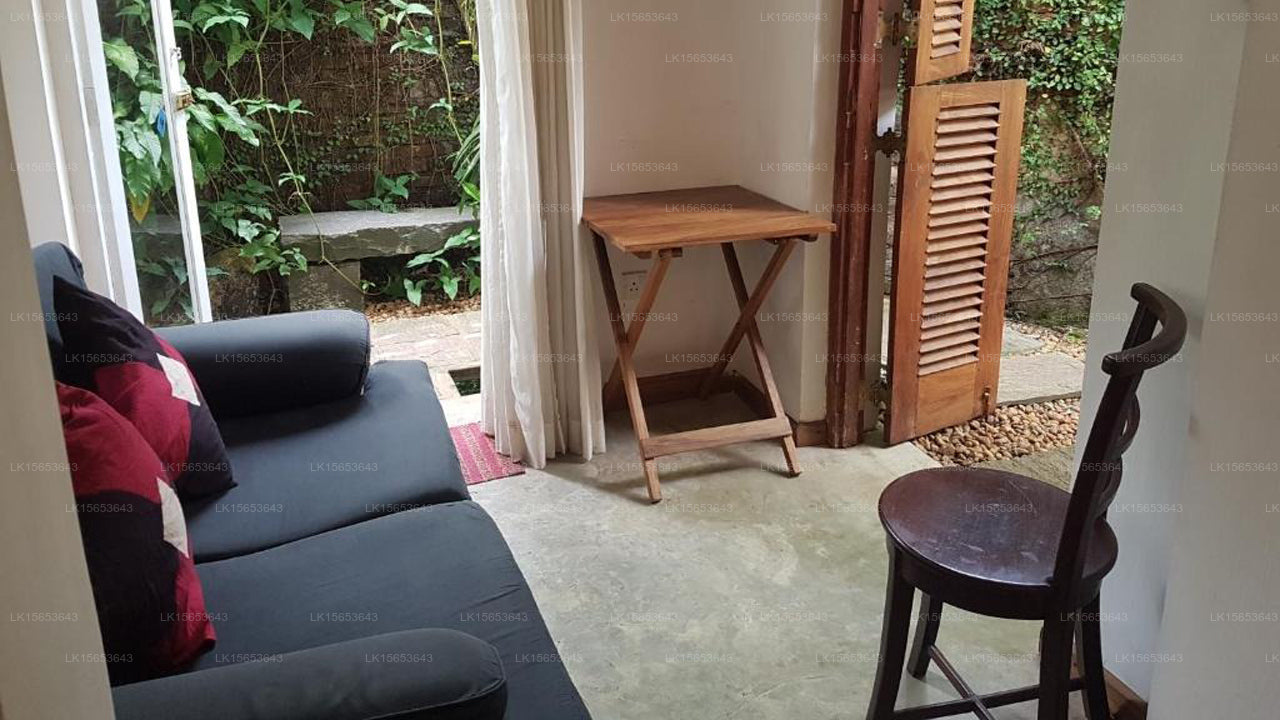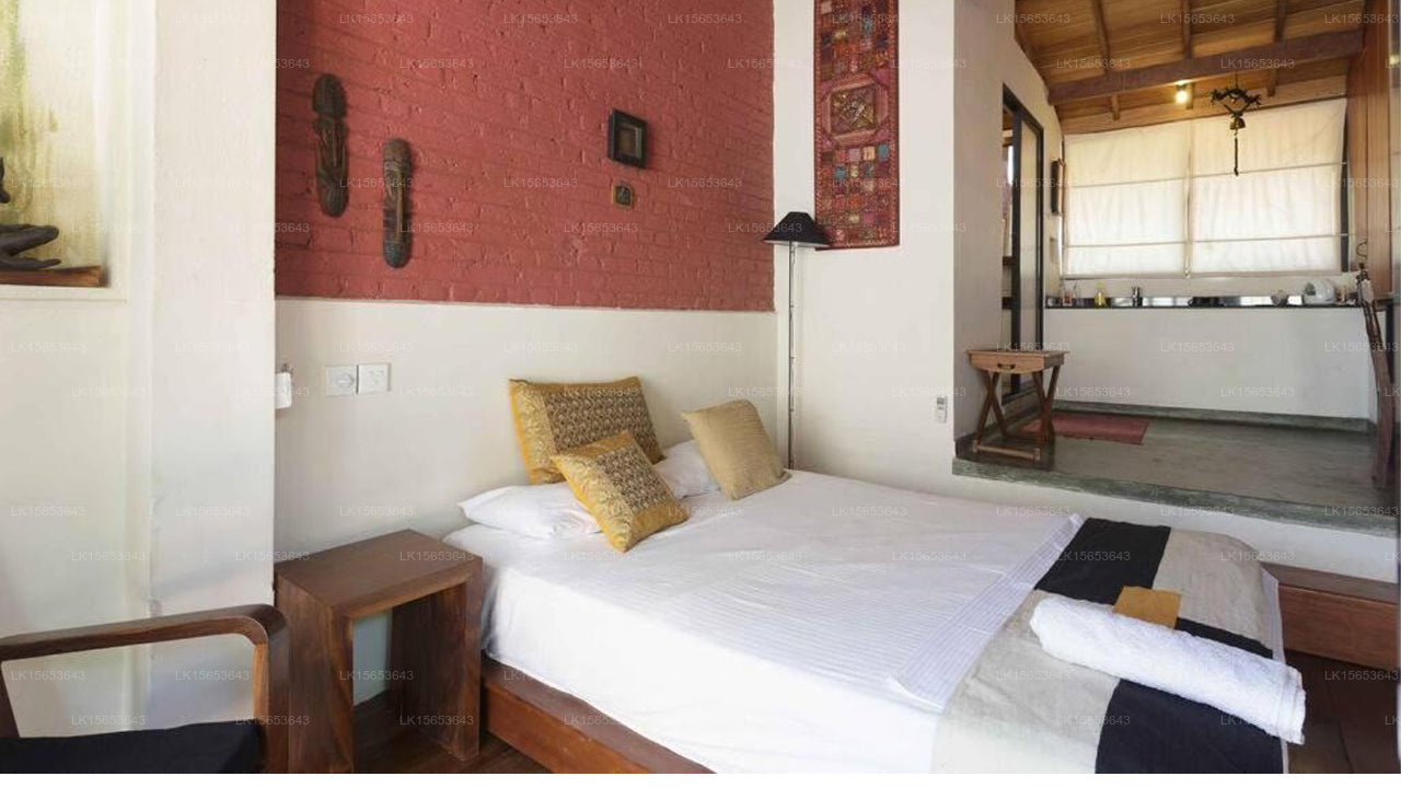 The guesthouse features a selection of rooms, including Single Rooms, Garden Suites, and Deluxe Suites. Each room is thoughtfully designed with elegant Sri Lankan decor, featuring wood-beamed ceilings, modern textiles, and attractive artwork. Amenities include air conditioning, mini-fridges, electric kettles, and en-suite bathrooms with rainfall showers. Some rooms offer private balconies or terraces overlooking the verdant gardens.