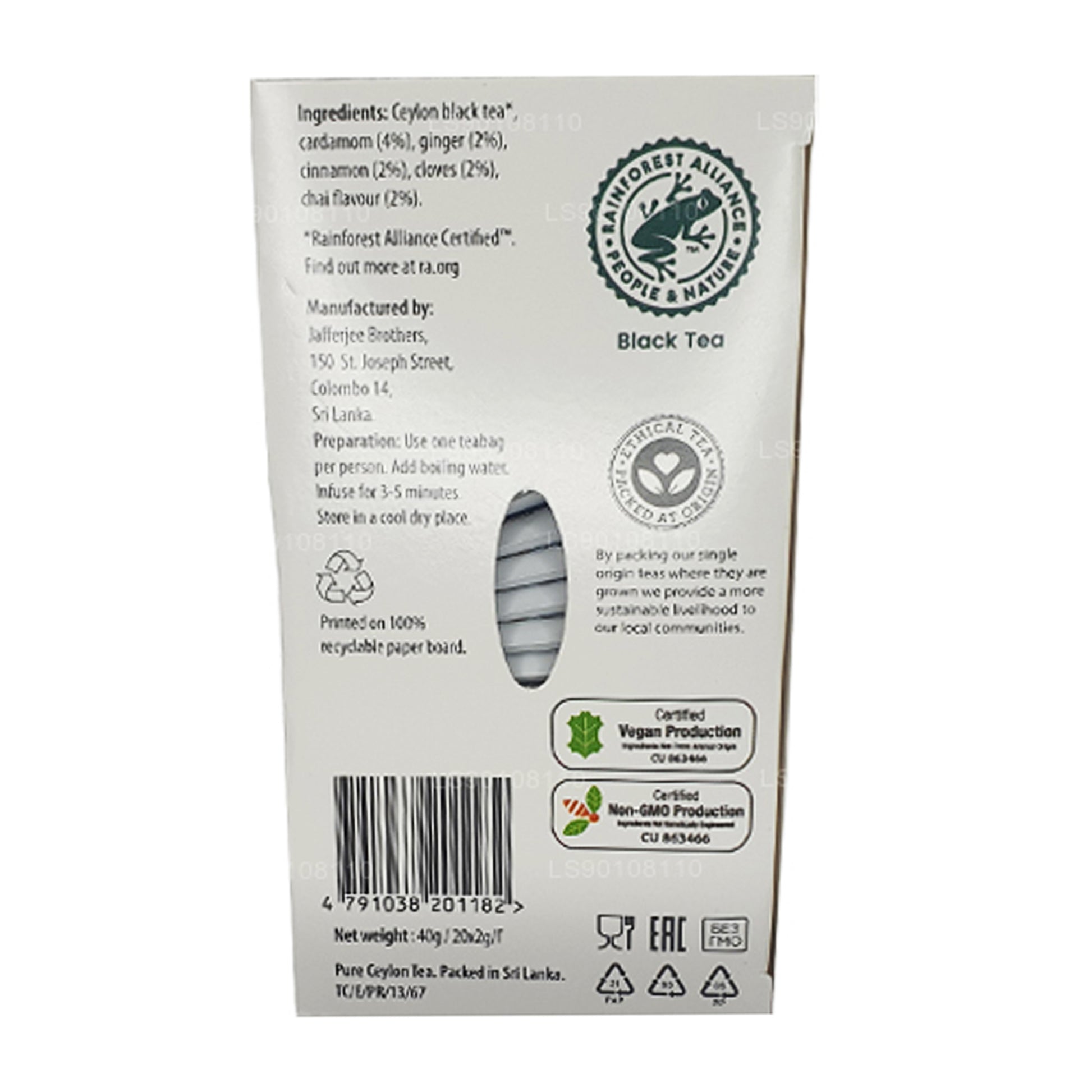 (SKU: LS90108110) En lækker opvarmning, livlig smag forbedret med ægte naturlige krydderier, mesterligt blandet med vores berømte Ceylon sort te. Brew i 5 minutter for at udvikle den trøstende smag og aroma. Traditionelt taget med et stænk mælk eller en dråbe honning til sødme.