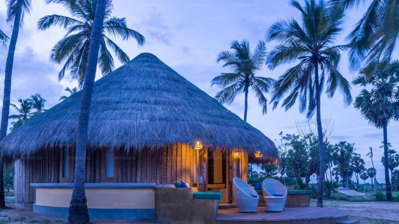 (SKU: LK150011C4) On the eastern edge of our teardrop-shaped island, an uncharted coastline separates our verdant lands from the pristine waters of the Indian Ocean. This harmonious relationship with nature is a story of complementary coexistence, effortlessly brought to life at our cabana resort in Pottuvil Point, a serene hideaway near the celebrated beaches of Arugam Bay.
