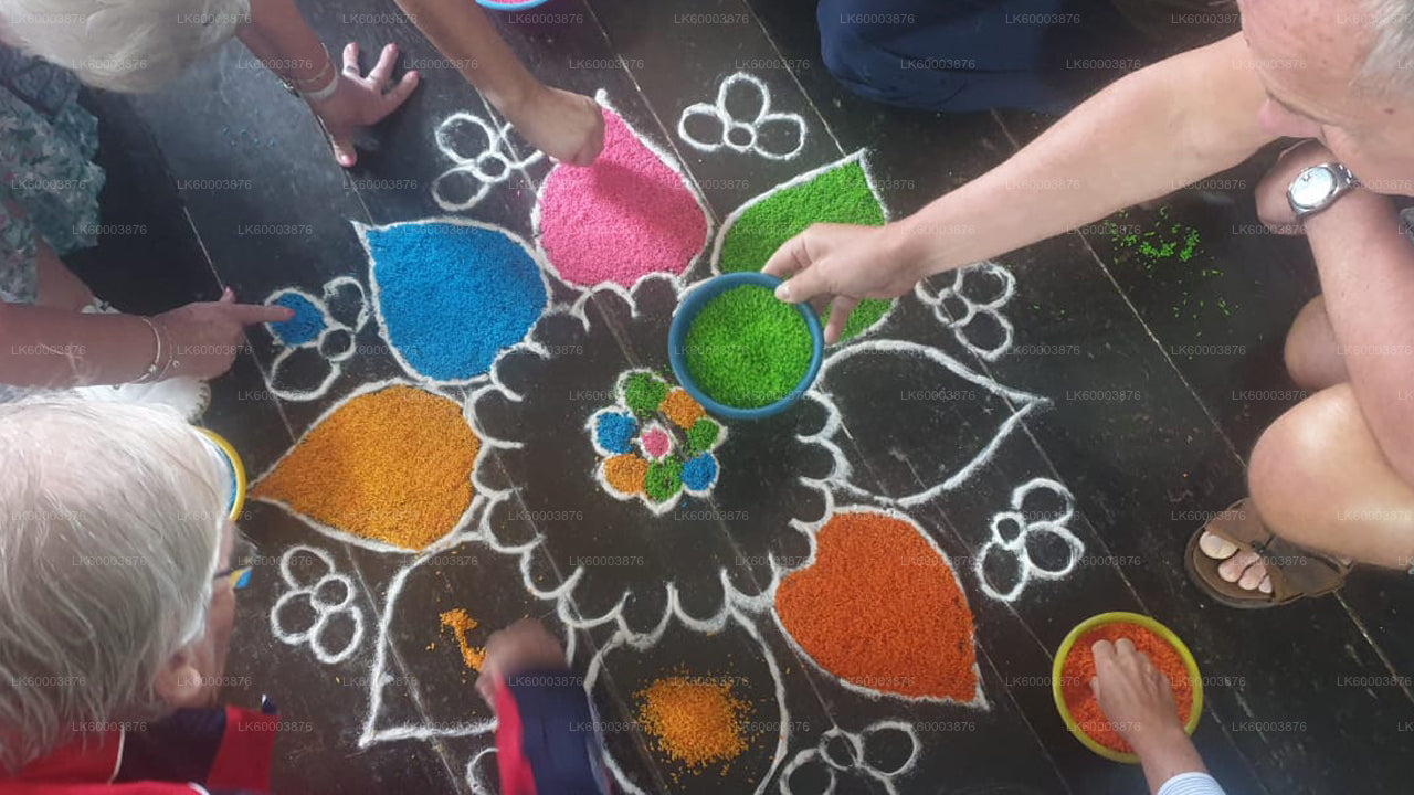 Oplev den rige tamilsk kultur i den naturskønne Kandapola landsby nær Nuwara Eliya. Mød lokale landmænd og landsbyboere for at lære om deres traditioner og daglige liv, mens du ifører dig farverigt tamilsk tøj. Nyd traditionel musik, forkæl dig med en lækker tamilsk festmiddag med dosai, vade, idli og Yaara te, og udforsk kunsten at lave mandalaer, mens du skaber dit eget design og lærer dens åndelige betydning. Denne unikke kulturelle oplevelse kombinerer arv, tradition og den betagende skønhed i Sri Lankas bjergrige landskab.