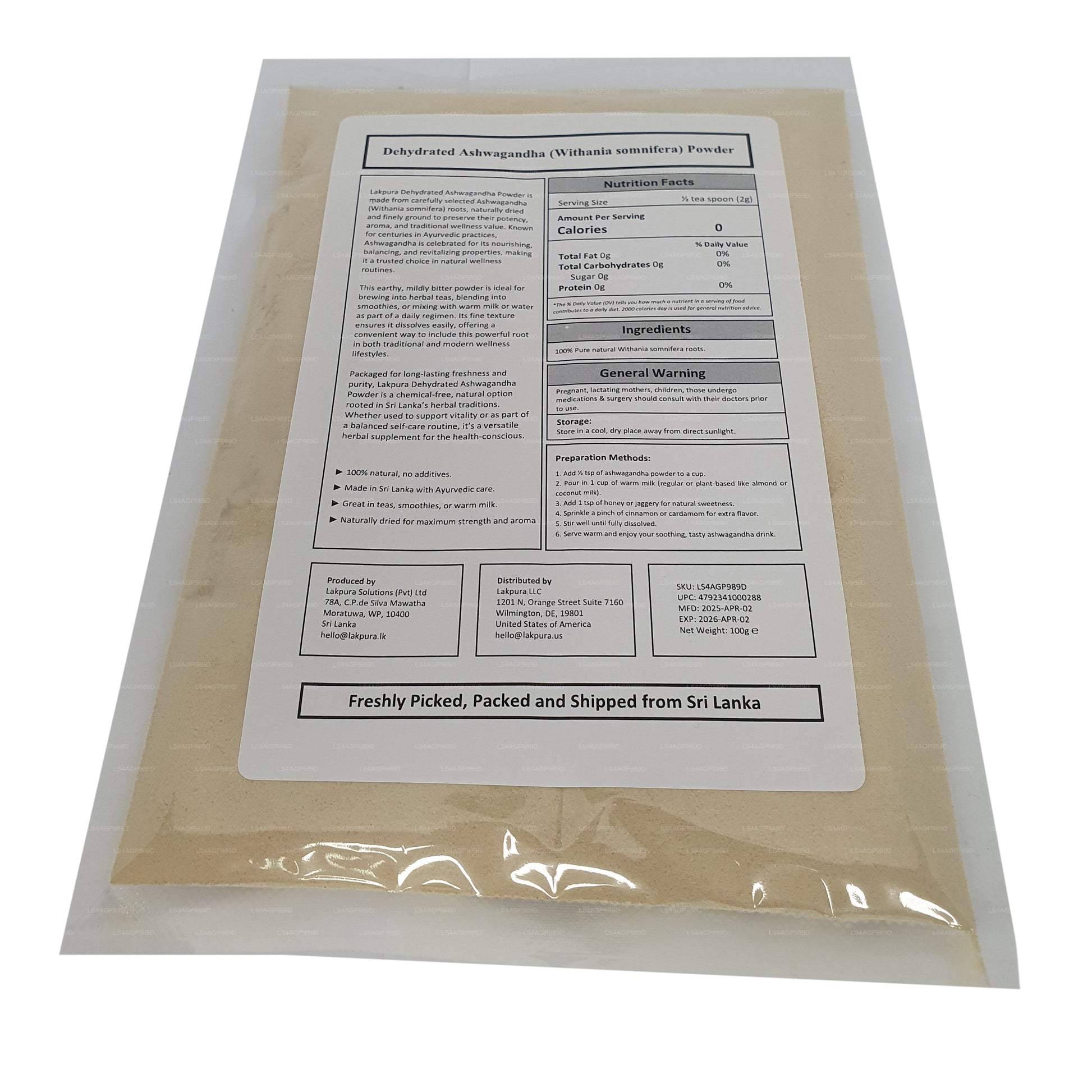 Lakpura® Dehydrate Ashwagandha Powder (100g)