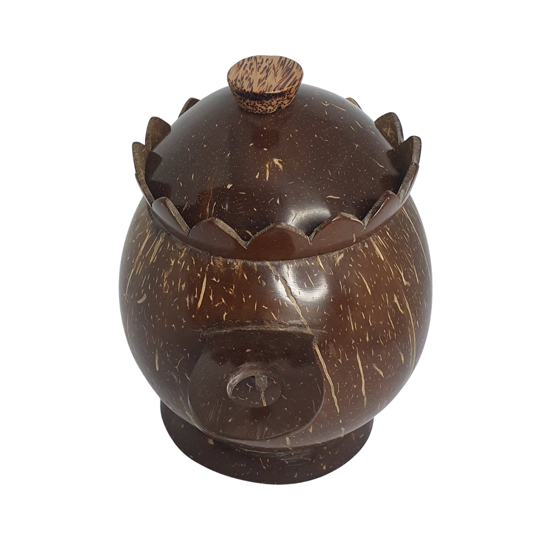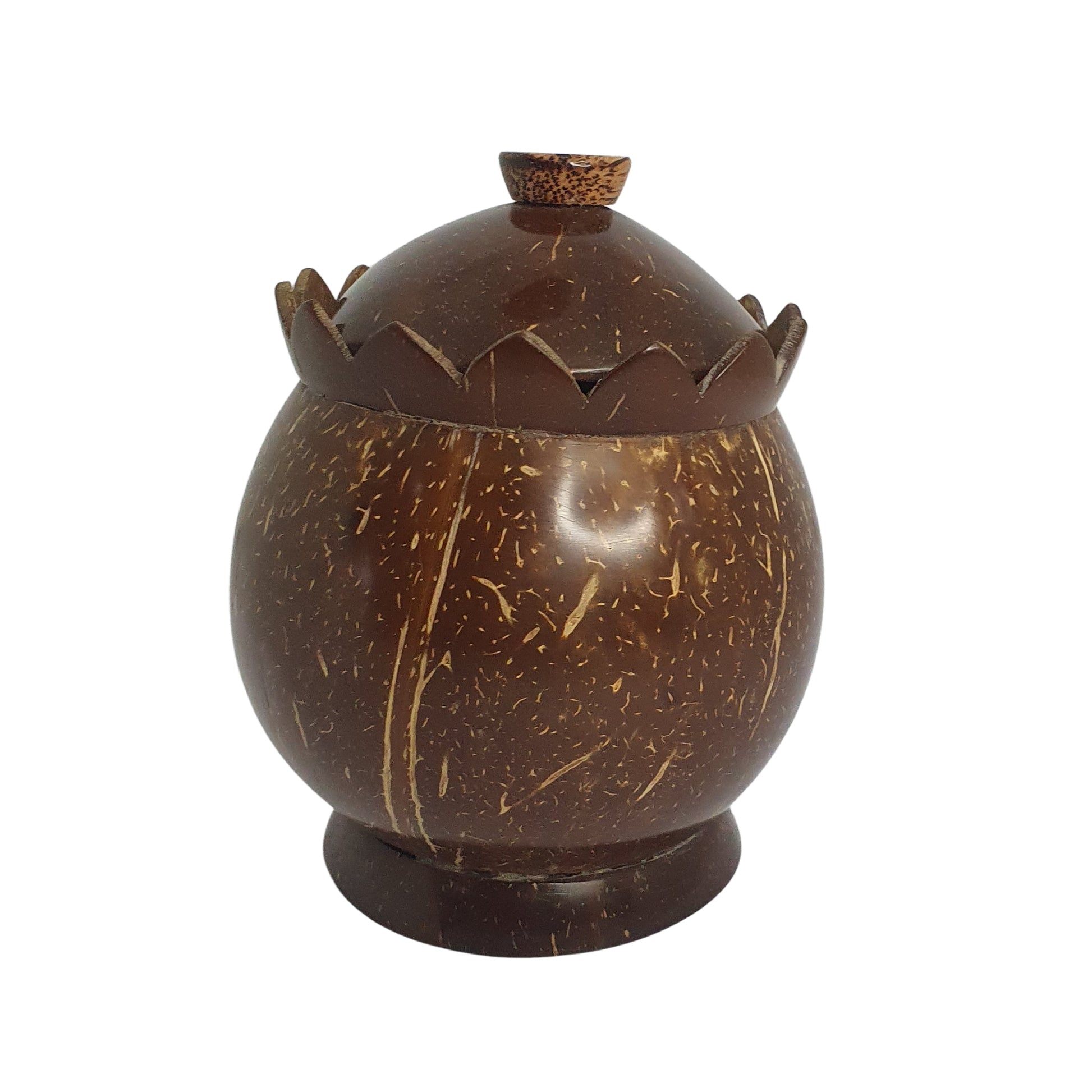 Lakpura® bølgeskåret saltbeholder er en stilfuld og miljøvenlig beholder lavet af naturlig kokosnød. Dens unikke bølgeformede design tilføjer et strejf af rustik elegance til ethvert køkken, samtidig med at den giver en bæredygtig opbevaringsløsning til dit salt. Kokosnødmaterialet sikrer holdbarhed og et naturligt udseende, mens dens kompakte størrelse gør den praktisk til daglig brug. Denne beholder er ideel til at holde salt tørt og tilgængeligt og er både praktisk og et smukt eksempel på srilankansk håndværk, perfekt til dem, der leder efter et miljøvenligt alternativ til plastikbeholdere.