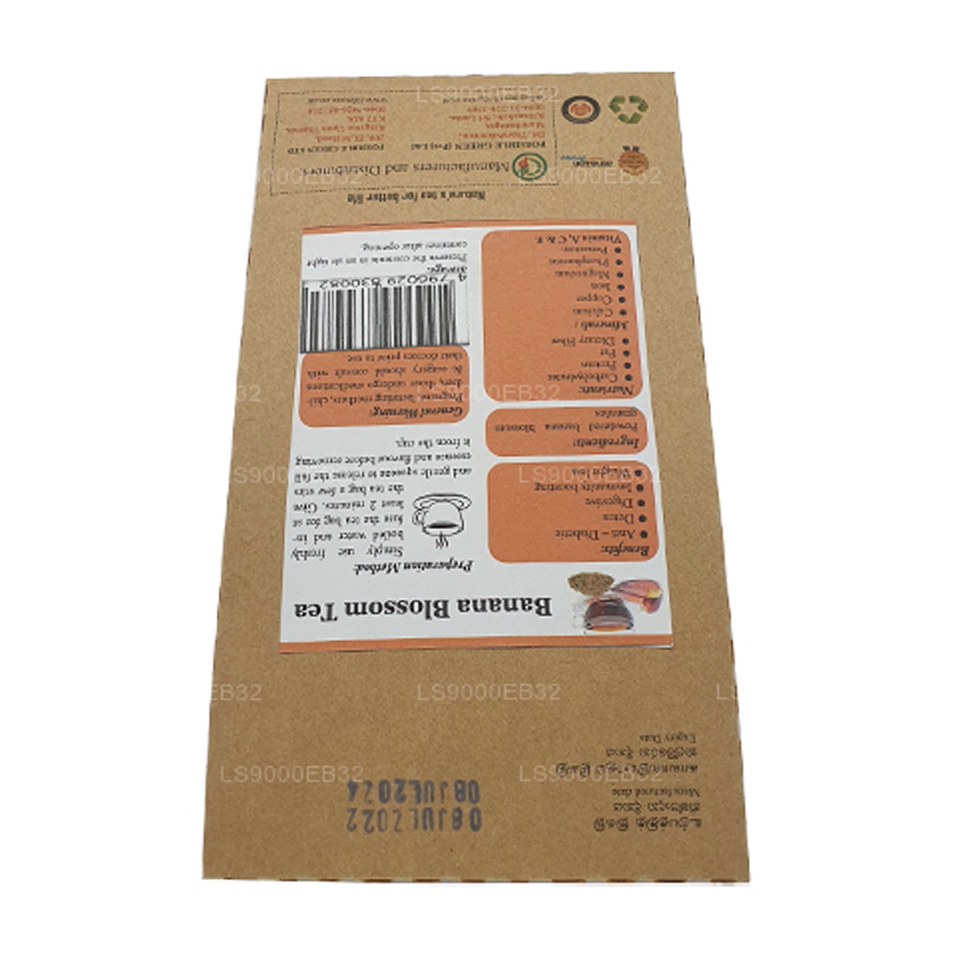 (SKU: LS9000EB32) Bananblomst urtete: Bananblomst, også kaldet bananblomst, er hjemmehørende i Sydøstasien. Alle dele af banantræ er meget nyttige med hensyn til terapeutiske fordele, og bananblomst har været kendt for at tjene mange terapeutiske formål, og det er derfor, Possible Green Ltd. har bragt bananblomstete til den moderne verden, så alle kan nyde det mange sundhedsmæssige fordele Forbedrer vægttab, afgiftende, populær anti-aging te.