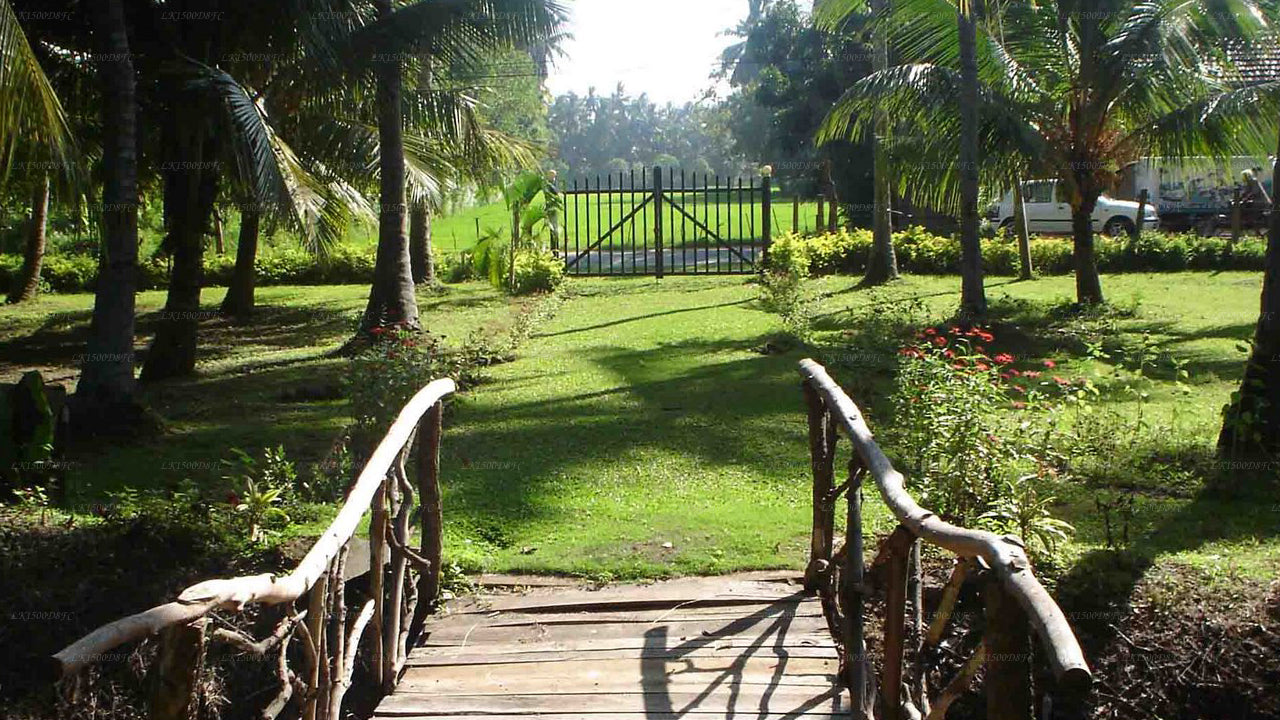 (SKU: LK1500D8FC)Muhandiram Walauwa, Tissamaharama, is a haven of luxury amidst cultural and natural wonders. With seven opulent rooms and two cabanas, each exceeding 400 square feet, the hotel offers air-conditioned comfort, safety lockers, internet facilities, IDD phones, and attentive room service. Nestled in Kasingama on Kirinda Road, it provides easy access to the revered Tissamaharama shrines, Yala National Park, and exciting excursions to ancient tanks and bird-watching adventures. The unique tree-top restaurant presents specially curated menus for couples and families, delivering a culinary experience that complements the hotel's picturesque surroundings.