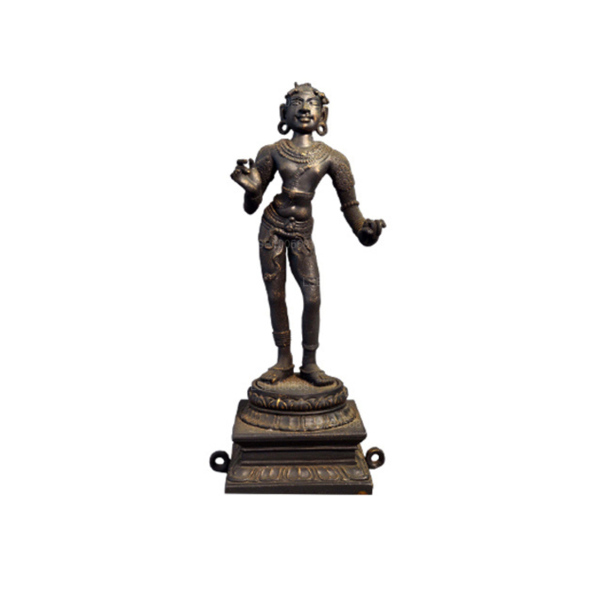 It represents Sundaraswami, who is devoted to the worship of Shiva. This sculpture dates back to the twelfth century A.C. The use of bronze as a material for this creation indicates that it was made during the Polonnaruwa period. Within the Shiva religion, he is considered one of the sixty-three saints. Sundaraswami writes Hindu stotras called "Thevarams" and sings them from temple to temple. Showcasing handsomeness and youthfulness, this sculpture shows tribhanga features, and the hand gesture shows Katakahastha Mudra. The sculpture is presently on exhibit in Colombo's National Museum.