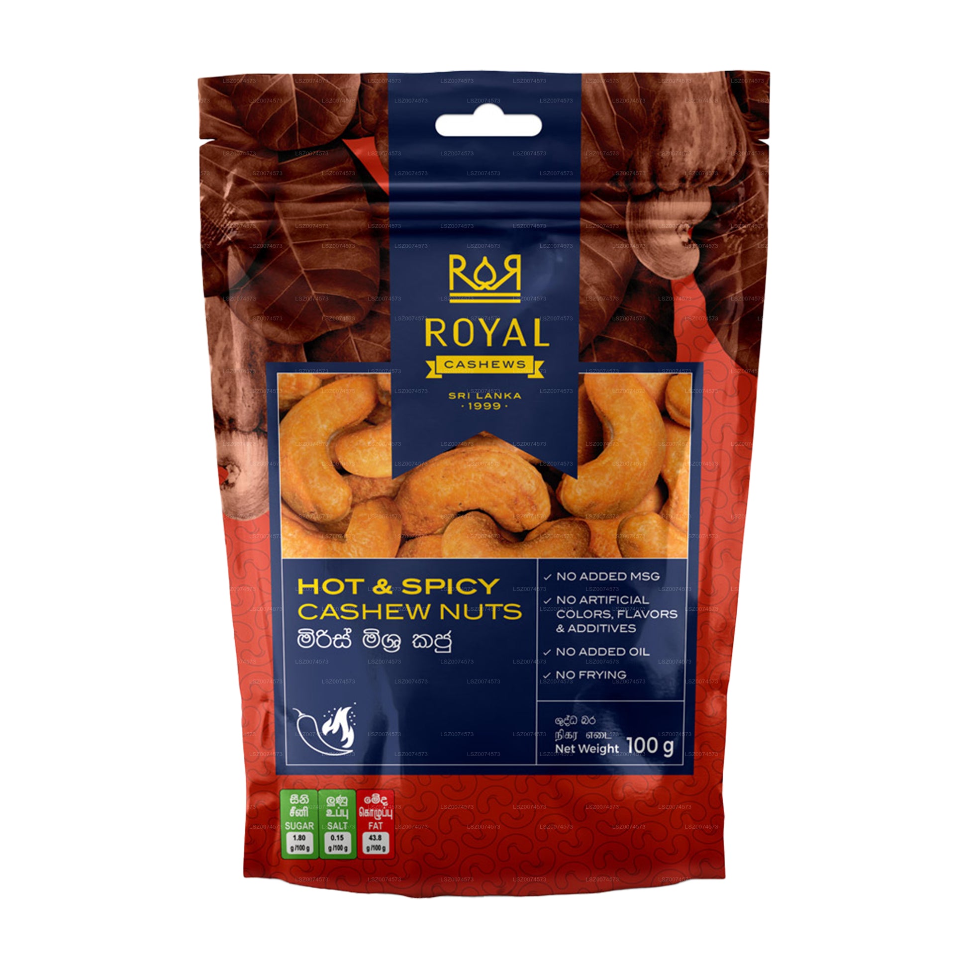 Royal Cashew varm og krydret cashew er førsteklasses cashewnødder, der er ristet til perfektion og overtrukket med en stærk, krydret krydderiblanding. Hver nød har en sprød tekstur med en rig, smøragtig smag suppleret af en fyldig, pikant varme, der begejstrer smagsløgene.