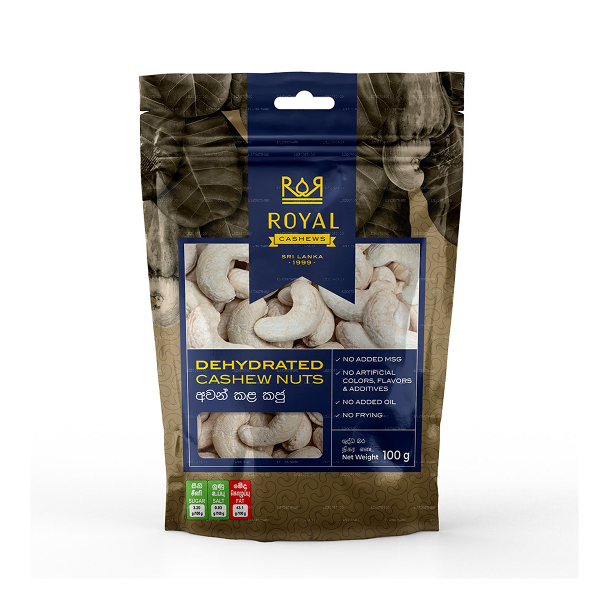 Royal dehydreret cashewnødspakke (100 g)