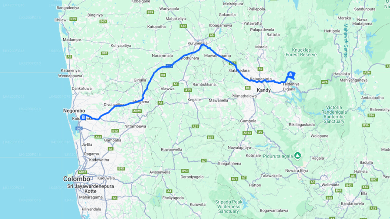 - Pick up within the city limits of Kandy and drop-off at Colombo Airport (CMB).