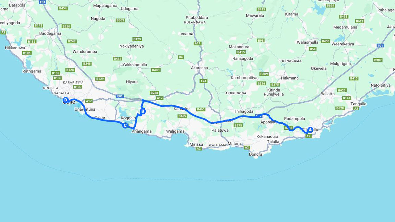 Højdepunkter på den sydlige kyst fra Dikwella