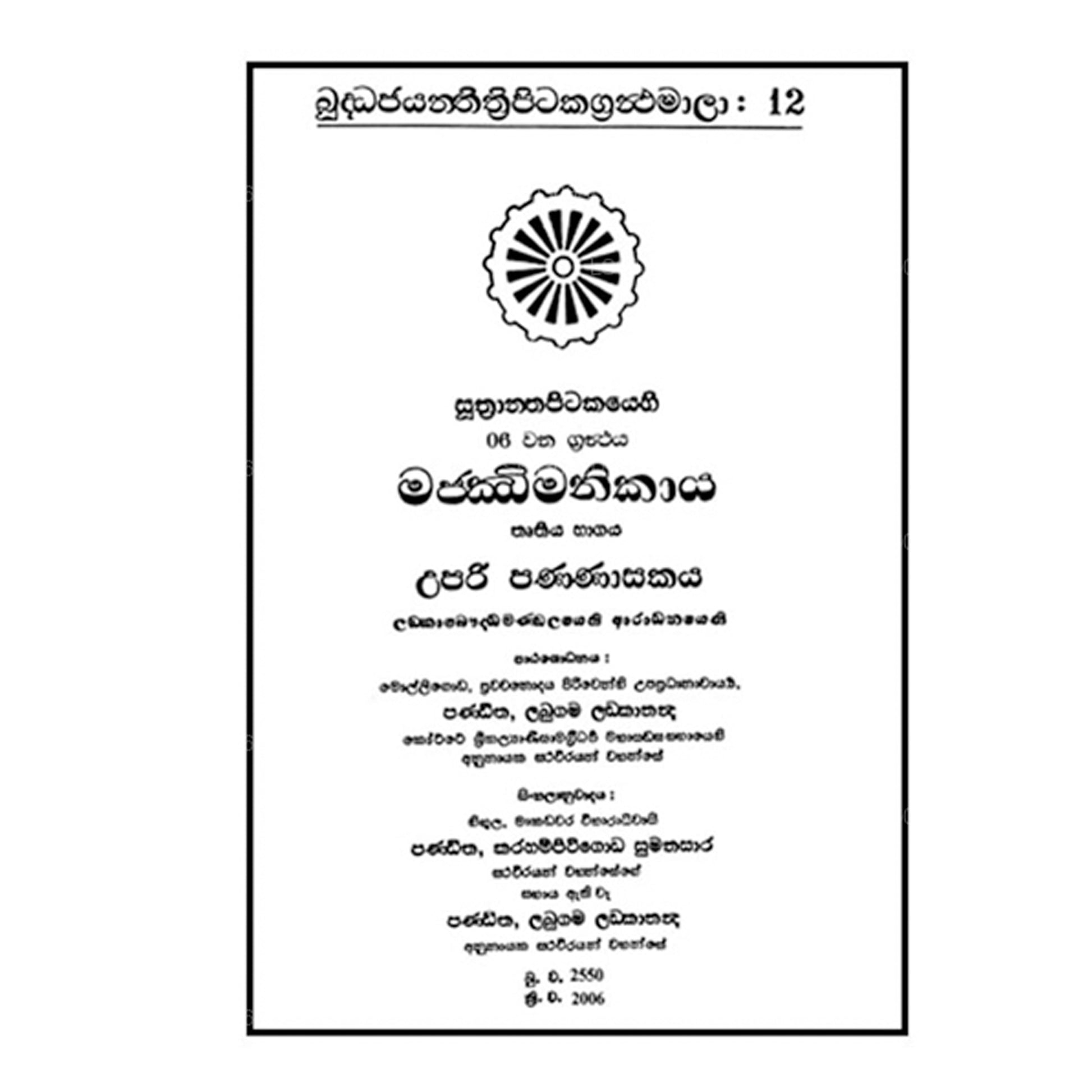 Suthra Pitakaya - Majjima Nikaya 3