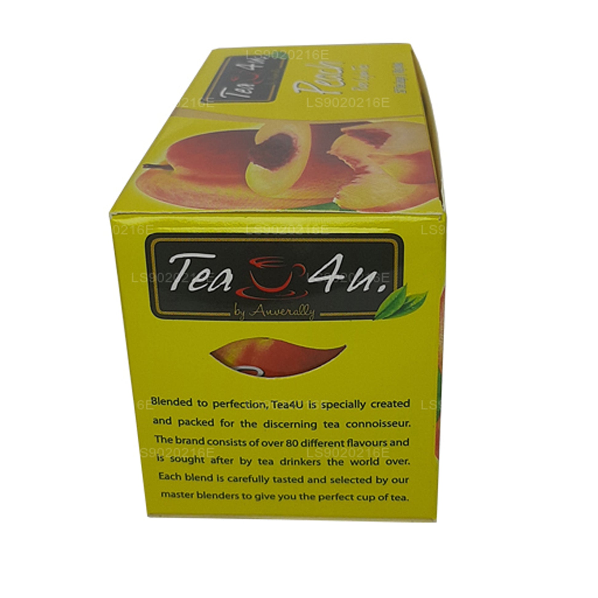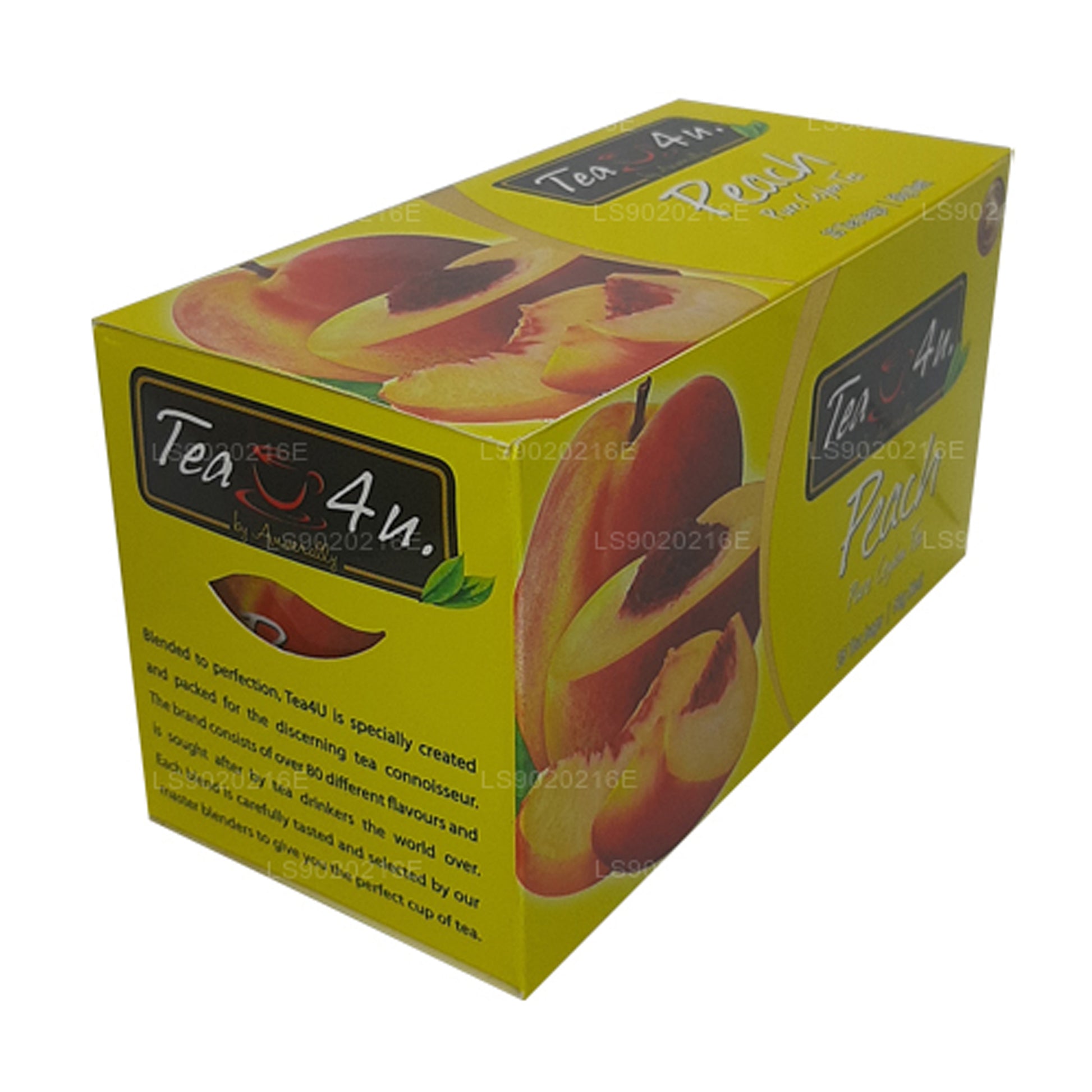 (SKU: LS9020216E) Tea4U Peach Tea is a premium blend featuring black tea from Sri Lanka's hills and the natural sweetness of ripe peaches. Packaged in foil envelopes for freshness, each box contains 25 tea bags. The tea delivers a harmonious balance of robust black tea notes and the fruity essence of peaches, creating a refreshing and satisfying beverage. Conveniently sealed for freshness, this blend caters to both tea enthusiasts and those looking to explore unique flavors. Enjoy the delightful fusion of Ceylon tea and juicy peaches in every cup with Tea4U Peach Tea.