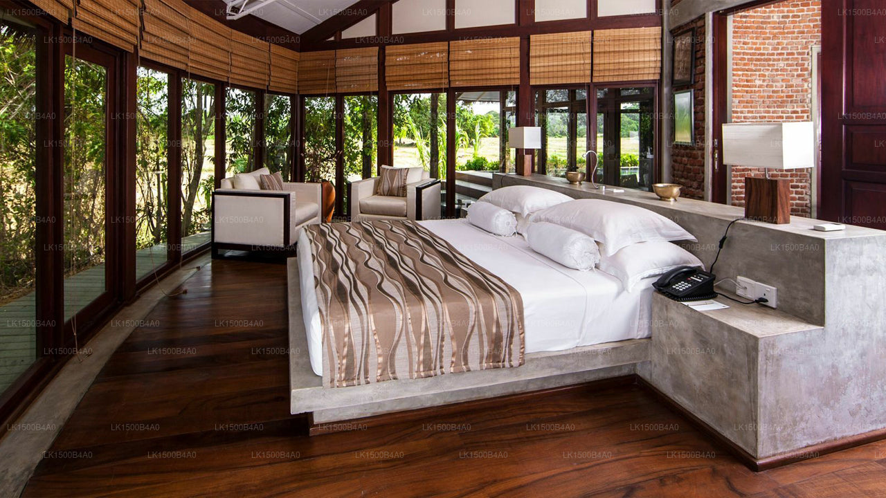 (SKU:LK1500B4A0) Escape to another era at Ulagalla Resort. Immerse yourself in culture, history and nature at this enchanting sanctuary. 800 sq ft25 detached chalets with private plunge pools are scattered on 58 acres of Sri Lanka's finest land. Experience agrotourism on the fascinating paddy and vegetable fields of Sri Lanka. The historic architecture and the discreet placement of the chalets offer privacy and serenity. Enjoy our fully equipped gym, pool, sauna and archery stations; canoeing and kayaking are available on the lake. Go horseback riding through the fields for a unique experience at Ulagalla Resort.