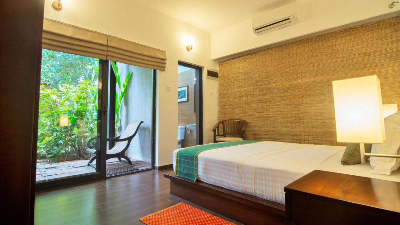 The villa features elegantly designed rooms and suites with contemporary decor and modern amenities. Each room includes plush bedding, en-suite bathrooms, and large windows or balconies offering views of the lush garden, ensuring a comfortable and restful stay.